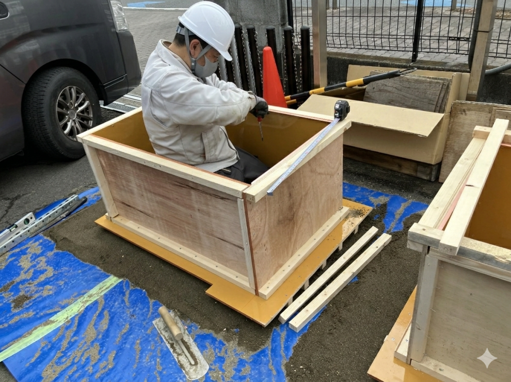 EV充電器は、雨風にさらされる屋外に設置されることが多く、重量もあります。 そのため、充電器を支える「コンクリート基礎」には、非常に高い強度と精度が求められます。