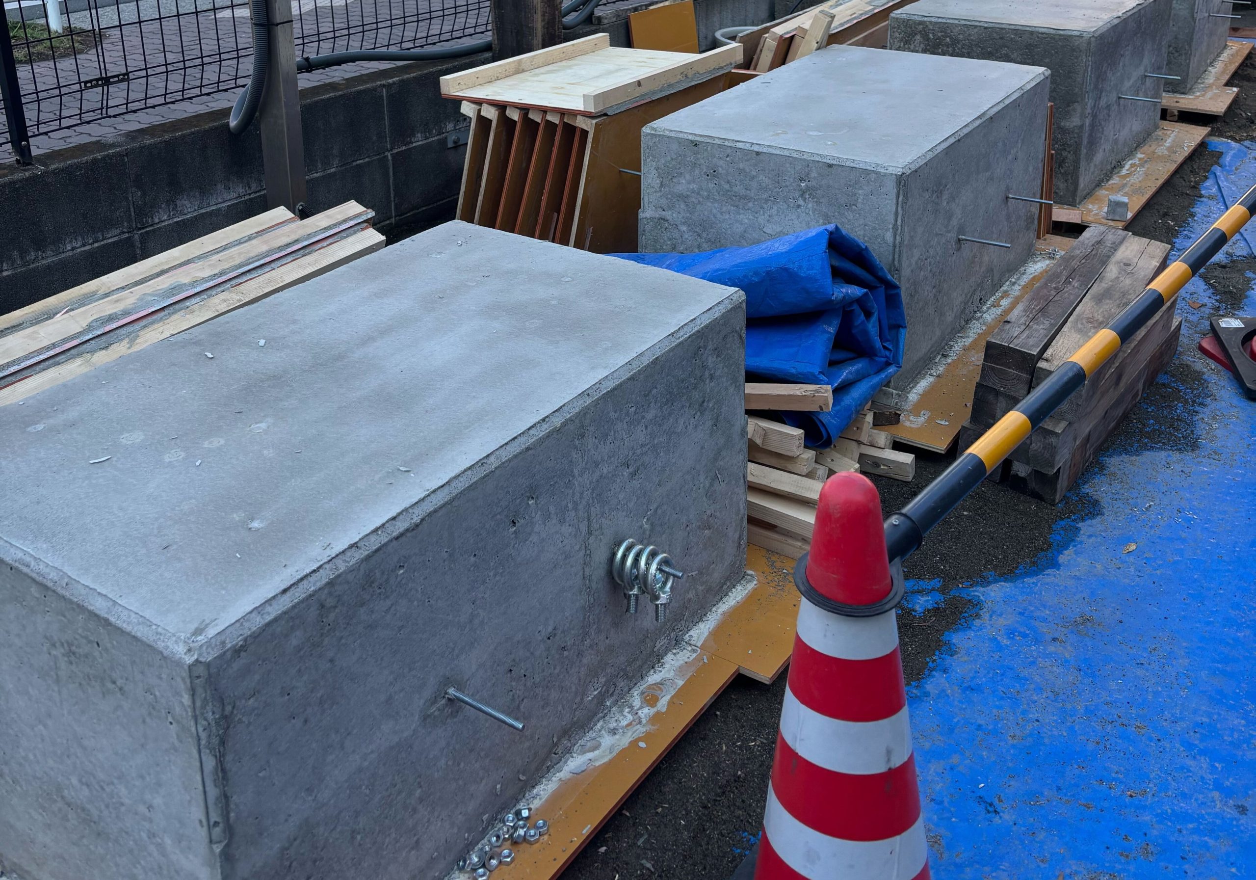 ヤードで丁寧に作り上げたこの基礎たち。 次回は、いよいよこれらをトラックに積み込み、設置現場へと運び出します(搬出編)。